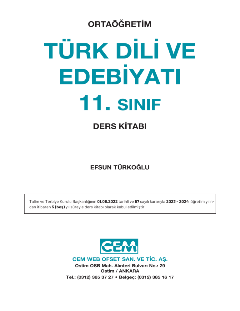 11. Sınıf Türk Dili ve Edebiyatı Ders Kitabı - Efsun Türkoğlu