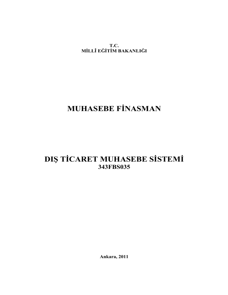 T.C. MİLLÎ EĞİTİM BAKANLIĞI MUHASEBE FİNASMAN DIŞ TİCARET MUHASEBE SİSTEMİ 343FBS035 Ankara, 2011 Bu modül, mesleki ve teknik eğitim okul/kurumlarında uygulanan Çerçeve Öğretim Programlarında yer alan yeterlikleri kazandırmaya yönelik olarak öğrencilere rehberlik etmek amacıyla hazırlanmış bireysel öğrenme materyalidir. Millî Eğitim Bakanlığınca ücretsiz olarak verilmiştir. PARA İLE SATILMAZ. İÇİNDEKİLER AÇIKLAMALAR ....................................................................................................................ii GİRİŞ ....................................................................................................................................... 1 ÖĞRENME FAALİYETİ–1 .................................................................................................... 2 1. DIŞ TİCARET İŞLEMLERİNDE MUHASEBE................................................................. 2 1.1. Dış Ticaret Muhasebesinin Önemi................................................................................ 2 1.1.1. Muhasebenin Önemi.............................................................................................. 2 1.1.2. Dış Ticaret Muhasebesi İçin Gerekli Ön Bilgiler .................................................. 3 1.2. Dış Ticarette Hesap Planı.............................................................................................. 3 1.2.1. Hesap Planı Düzenleme ......................................................................................... 3 1.2.2. Dış Ticarette Kullanılan Hesaplar ......................................................................... 4 UYGULAMA FAALİYETİ .............................................................................................. 13 ÖLÇME VE DEĞERLENDİRME .................................................................................... 14 UYGULAMALI TEST ...................................................................................................... 15 ÖĞRENME FAALİYETİ–2 .................................................................................................. 16 2. DÖVİZ İŞLEMLERİ.......................................................................................................... 16 2.1. Kambiyo, Döviz Ve Efektif Kavramları ..................................................................... 16 2.1.1. Kambiyo .............................................................................................................. 16 2.1.2. Efektif ve Döviz................................................................................................... 16 2.2. Döviz İşlemlerinin Muhasebeleştirilmesi ................................................................... 17 2.2.1. Kasa Hesabı ve Yabancı Para Kasası ve İşlemleri .............................................. 17 2.2.2. Yabancı Paralı Alınan Çekler .............................................................................. 23 2.2.3. Yabancı Paralı Bankalar Hesabı .......................................................................... 25 2.2.4.Yurt Dışı Alacaklar............................................................................................... 26 2.2.5. Yabancı Para Cinsinden Senetler......................................................................... 29 2.2.6. Diğer Alacaklar.................................................................................................... 31 2.2.7. Yurt dışı Üretim ve Stok Hesapları ..................................................................... 31 2.2.8. Yurt dışı Avans Hesapları.................................................................................... 33 2.2.9. Katma Değer Vergisi Hesapları........................................................................... 36 2.2.10. Maddi Duran Varlık Hesapları .......................................................................... 39 2.2.11. Kredi Hesapları.................................................................................................. 40 2.2.12. Yurt Dışı Satıcılar .............................................................................................. 42 2.2.13. Gelir Tablosu Hesapları..................................................................................... 42 2.2.14. Maliyet Hesapları............................................................................................... 49 UYGULAMA FAALİYETİ .............................................................................................. 52 ÖLÇME VE DEĞERLENDİRME .................................................................................... 53 MODÜL DEĞERLENDİRME .............................................................................................. 57 MODÜL DEĞERLENDİRME .............................................................................................. 59 CEVAP ANAHTARLARI ..................................................................................................... 60 KAYNAKÇA ......................................................................................................................... 67 i AÇIKLAMALAR AÇIKLAMALAR MODÜLÜN KODU 343FBS035 ALAN Muhasebe ve Finansman DAL/MESLEK Dış Ticaret Ofis Elemanı MODÜLÜN ADI MODÜLÜN TANIMI Dış Ticaret Muhasebe Sistemi Dış ticaret işletmesinde döviz ile ilgili işlemlerinin kayıt edilmesi ile ilgili bilgilerin verildiği öğrenme materyalidir. SÜRE 40/16 ÖN KOŞUL Öğrenci mesleki yabancı dil 1 ve 2 modüllerini almış olmalıdır. Muhasebe sistemini oluşturmak YETERLİK MODÜLÜN AMACI Genel Amaç Bu modül ile, öğrenci, gerekli ortam sağlandığında, işletmenin dövizli tahsilat, ödeme ve çek işlemlerini ilgili defterlere kaydedebilecektir. Amaçlar 1. Öğrenci, dış ticaret işlemlerinin muhasebe kayıtlarını yapabilecektir. 2. Öğrenci, dış ticarette döv