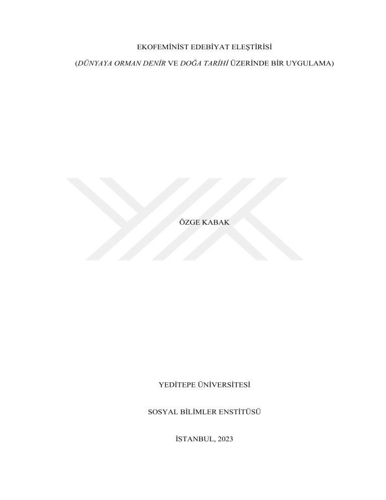 EKOFEMİNİST EDEBİYAT ELEŞTİRİSİ (DÜNYAYA ORMAN DENİR VE DOĞA TARİHİ ÜZERİNDE BİR UYGULAMA) ÖZGE KABAK YEDİTEPE ÜNİVERSİTESİ SOSYAL BİLİMLER ENSTİTÜSÜ İSTANBUL, 2023 EKOFEMİNİST EDEBİYAT ELEŞTİRİSİ (DÜNYAYA ORMAN DENİR VE DOĞA TARİHİ ÜZERİNDE BİR UYGULAMA) ÖZGE KABAK DANIŞMAN DR. ÖĞR. ÜYESİ BAHAR GÖKPINAR SOSYAL BİLİMLER ENSTİTÜSÜNE SUNULAN BU TEZ KARŞILAŞTIRMALI EDEBİYAT YÜKSEK LİSANS DERECESİ İÇİN KISMİ YETERLİLİKLERİ KARŞILAMAKTADIR YEDİTEPE ÜNİVERSİTESİ SOSYAL BİLİMLER ENSTİTÜSÜ İSTANBUL, 2023 i Yüksek lisans tezi olarak sunduğum bu çalışmayı, bilimsel ahlak ve geleneklere aykırı düşecek bir yol ve yardıma başvurmaksızın yazdığımı, yararlandığım eserlerin kaynakçada gösterilenlerden oluştuğunu ve bu eserleri her kullanışımda alıntı yaparak yararlandığımı belirtir; bunu onurumla doğrularım. Enstitü tarafından belli bir zamana bağlı olmaksızın, tezimle ilgili yaptığım bu beyana aykırı bir durumun saptanması durumunda, ortaya çıkacak tüm ahlaki ve hukuki sonuçlara katlanacağımı bildiririm. 01/06/2023 Özge Kabak ii ÖZET Feminizm, çevreci teoriler ve ekofeminizmin edebiyatta yerini alması ile meydana gelen ekofeminist edebiyat eleştirisi özellikle kadın ve çevre özelinde tahakküm altına alınan tüm grupların edebiyattaki tezahürleri ile oluşmuştur. Bunun yanı sıra ekofeminist edebiyat, silahlanma ve savaş karşıtlığı; kimyasal silah kullanımı gibi hem ortaya çıktığı 70’li yılların hem de hala günümüzde önemli bir yere sahip olan toplumsal meselelerin edebiyat penceresinden görünür hale getirilmesini sağlamıştır. Ekofeminizm, ataerkil toplumsal yapılanmada aşağı görülen kadın, doğa, hayvan; farklı cinsel yönelimlere sahip bireyler ve siyahiler gibi geniş bir kitleyi çatısı altında toplayarak çeşitli sömürülme biçimlerine karşı gelmiş; böylelikle insanın hükmetme arzusunun kurbanı olan tüm canlılar ve ekosistemi meselesi haline getirmiştir. Ekofeminist edebiyat eleştirisi sayesinde günümüzde hala çözülememiş, yüz yıllardır süregelen tüm ötekileştirme ve tahakküm biçimleri edebi eserlerde yerini alarak birer eleştiri nesnesi olmuştur. Bu amaç doğrultusunda, bu çalışmada, kapsamlı bir ekofeminizm tanımı yaparak, ekofeminist edebiyat eleştirisi çerçevesinde ekolojik duyarlılıkla birçok eser kaleme almış Ursula K. Le Guin’in (1953-2018) Dünyaya Orman Denir (1972) ve çağdaş Türk edebiyatında modern dünya eleştirisi ile öne çıkan Hakan Bıçakçı’nın (1978-…) Doğa Tarihi (2014) eseri üzerinde bir inceleme yapılarak; bu eserlerde kadın ve doğanın tahribi, kadın bedeninin sömürüsü, insanın tabiattan dolayısıyla özünden koparılması gibi temalarla ekofeminist bulguların tespit edilmesi amaçlanmıştır. Anahtar Kelimeler: Feminizm, Çevreci Teoriler, Ekofeminizm, Ekofeminist Edebiyat Eleştirisi, Ursula K. Le Guin, Hakan Bıçakçı iii ABSTRACT Ecofeminist literary criticism, which emerged with feminism, environmentalist theories and ecofeminism taking its place in literature, has been formed with the manifestations of all groups that are dominated, especially women and the environment, in literature. In other respect, ecofeminist literature has made social issues such as armament and anti-war and the use of chemical weapons, which were important both in the 70s when they emerged and still have an important place today, visible through the literary window. Ecofeminism has opposed various forms of exploitation by gathering under its umbrella a wide range of people such as women, nature, animals, individuals with different sexual orientations and black people, who are considered inferior in the patriarchal social structure; thus, it has made all living things and the ecosystem, which are victims of the human desire to dominate, its subject. Thanks to ecofeminist literary criticism, all forms of marginalization and domination that are still unresolved and have been going on for centuries have taken their place in literary works and become objects of criticism. In line with this purpose, this study aims to make a comprehensive definition of ecofeminism, and within the framework of ecofeminist literary criticism, to analyze Ursula K. Le Guin's (1953-2018) Dünyaaya Orman Denir (1972) and Hakan Bıçakçı's (1978-...) Doğa Tarihi (2014) and to identify ecofeminist findings in these works with themes such as the destruction of women and nature, the exploitation of the female body, and the separation of human beings from nature and thus from their essence. Keywords: Feminism, Environmental Theories, Ecofeminism, Ecofeminist Literature Criticism, Ursula K. Le Guin, Hakan Bıçakçı iv TEŞEKKÜR Bu süreçte zamanını, emeğini ve desteğini hiçbir zaman esirgemeyen çok kıymetli danışman hocam Dr. Öğr. Üyesi Bahar Gökpınar’a tüm yardımları için sonsuz teşekkürlerimi sunarım. Başarıya dair inancımı daima tazeleyen, tek bir cümlesiyle dahi yolumu aydınlatabilen Prof. Dr. Ali Budak hocama teşekkürü borç bilirim. Ayrıca her koşulda beni destekleyen, varlıkları ile güç bulduğum sevgili aileme ve çok değerli arkadaşlarıma teşekkür ederim. v İÇİNDEKİLER ÖZET……………..…………………………………………………………………….i ABSTRACT.....…..……………………………………………………………………ii TEŞEKKÜR……..…………………………………………………………...……… iv İÇİNDEKİLER .............................................................................................................. v GİRİŞ .............................................................................................................. 1 1. 2. TOPLUMSAL CİNSİYET ...................................................................